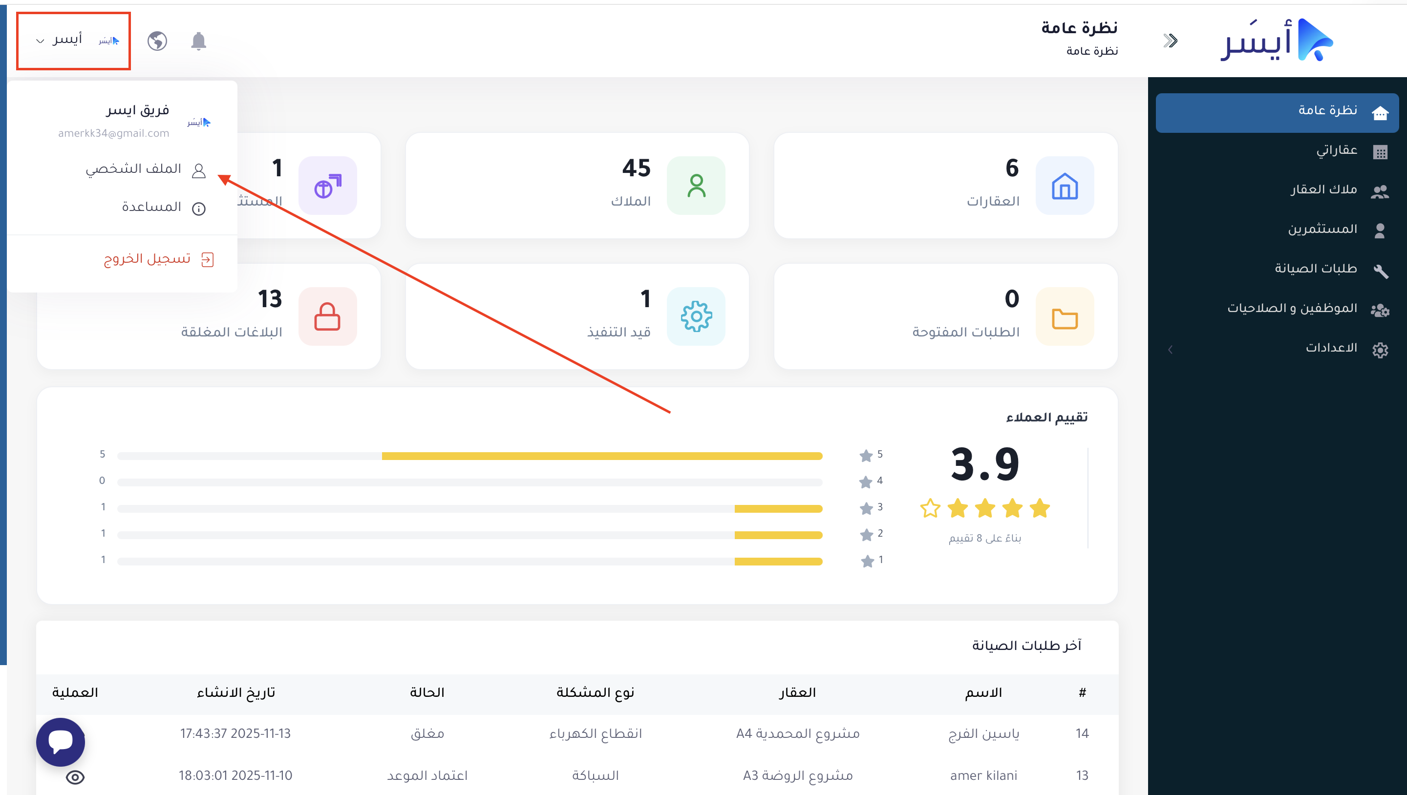- من الصفحة الرئيسية، انتقل إلى عقاراتي