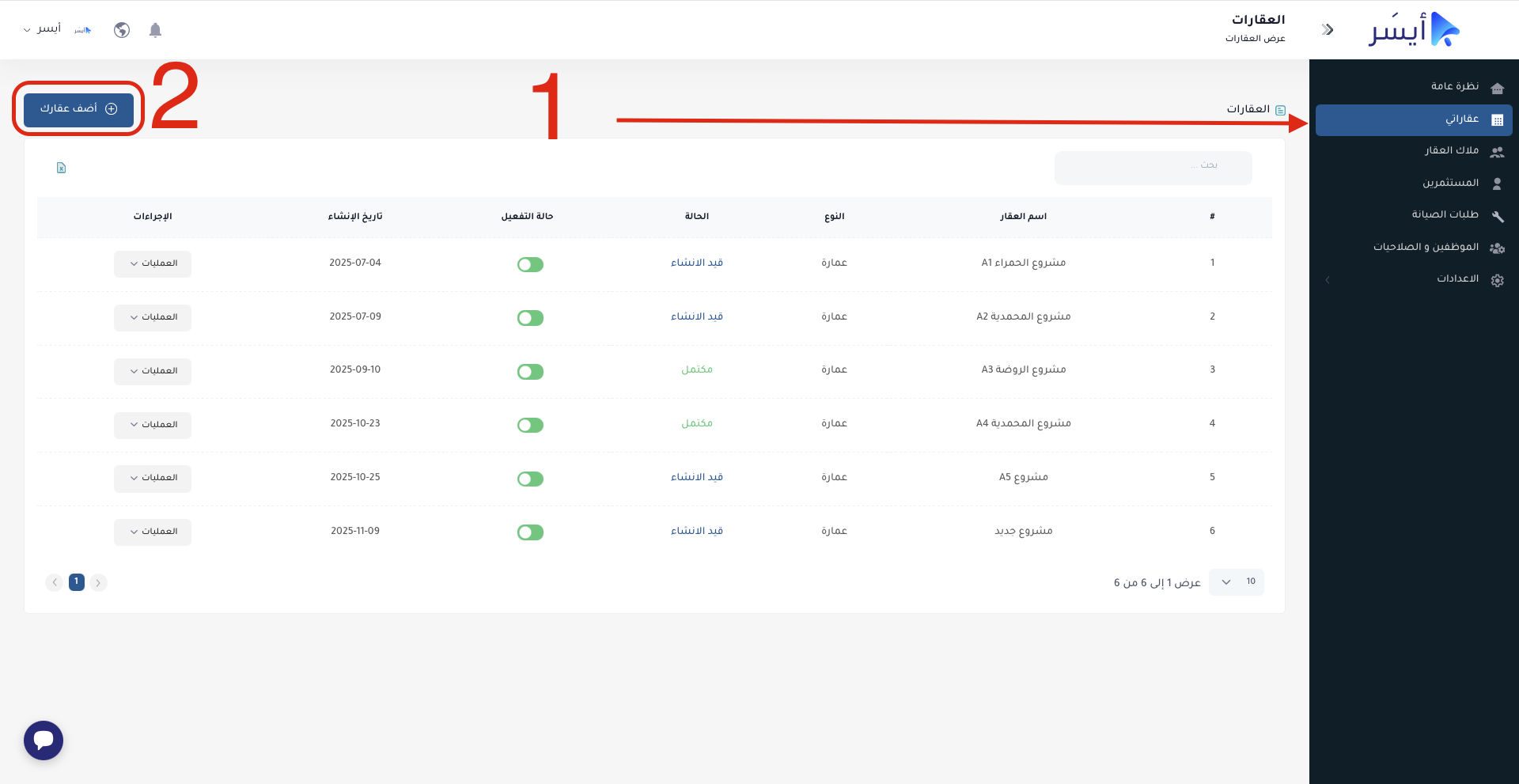 بعد الانتهاء من إعداد الحساب والإعدادات الأساسية، يمكنك الآن إضافة عقارك الأول ليظهر داخل تطبيق العملاء.