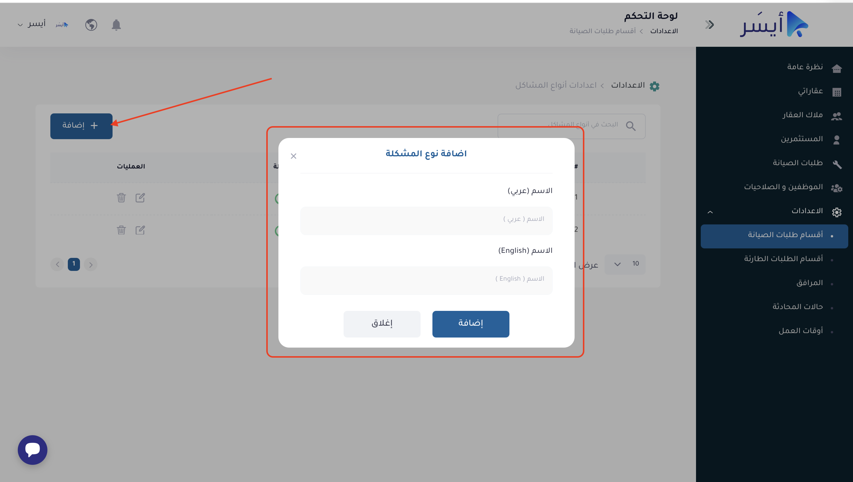 هذه الخطوة مهمة لتنظيم طلبات الصيانة داخل شركتك، سواء الطارئة أو العادية.